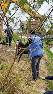 O chamado foi referente a um potro feminino, que estava preso no valão a 3 dias. A operação contou com participação da equipe de Bombeiros, Guarda Municipal, secretaria de Obras e Brigada Militar.